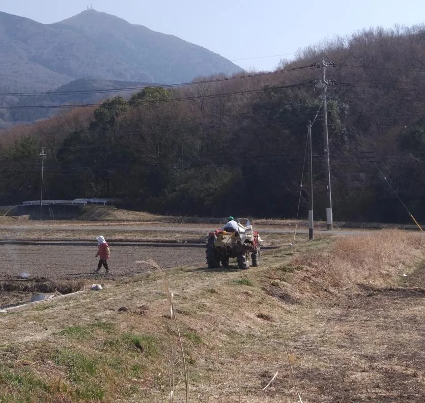 Ici, un paysan au dos voûté sortait de la rizière au volant de son tracteur, tandis que sa femme se tapait le brûlage des herbes.