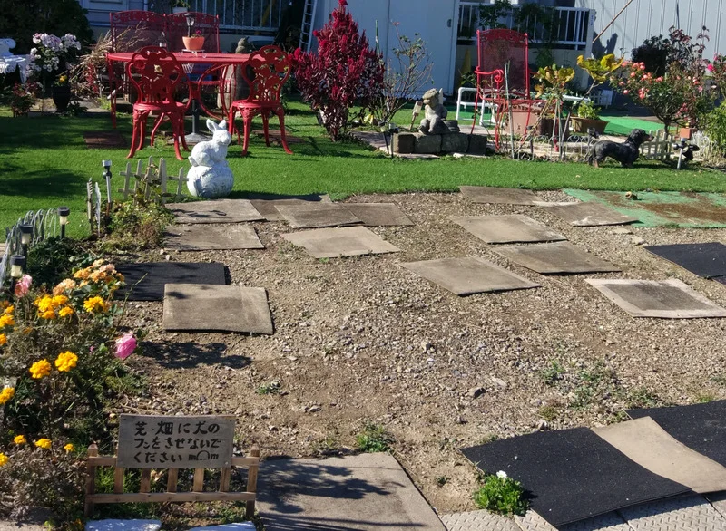 Plus loin, en passant à travers des ruelles rurales (ça existe ?), nous sommes tombés sur un jardin où l’on demandait aux passants de ne pas laisser leur chien se soulager dans le jardin.