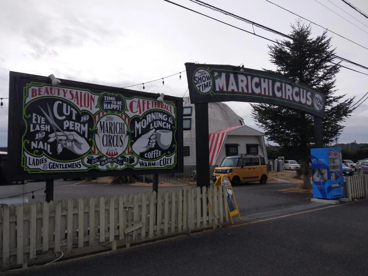 En retournant vers le tracé GPS, nous avons longé un commerce original, le MARICHI CIRCUS, mélange de salon de beauté et de… café-terrasse.