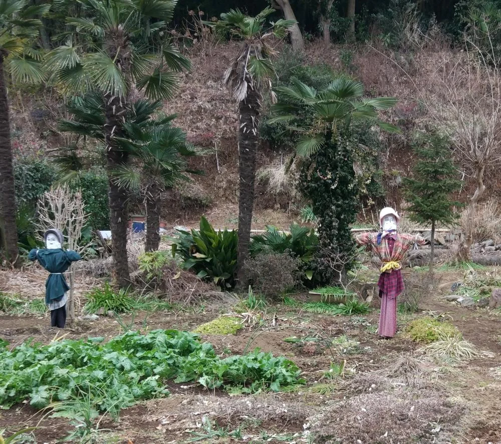 L’estomac rassasié, nous avons repris notre route sur un étroit chemin de terre où, à la hauteur d’une intersection déserte, une affiche indiquait qu’il fallait céder la priorité aux véhicules agricoles (農耕車優先).