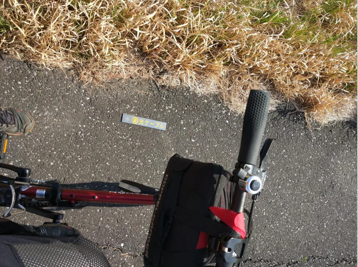 Au printemps, à l’aurore, j’aime, quand je m’arrête pour prendre le paysage en photo, me rendre compte que je roule sur un câble de fibre optique (光ケーブル).
