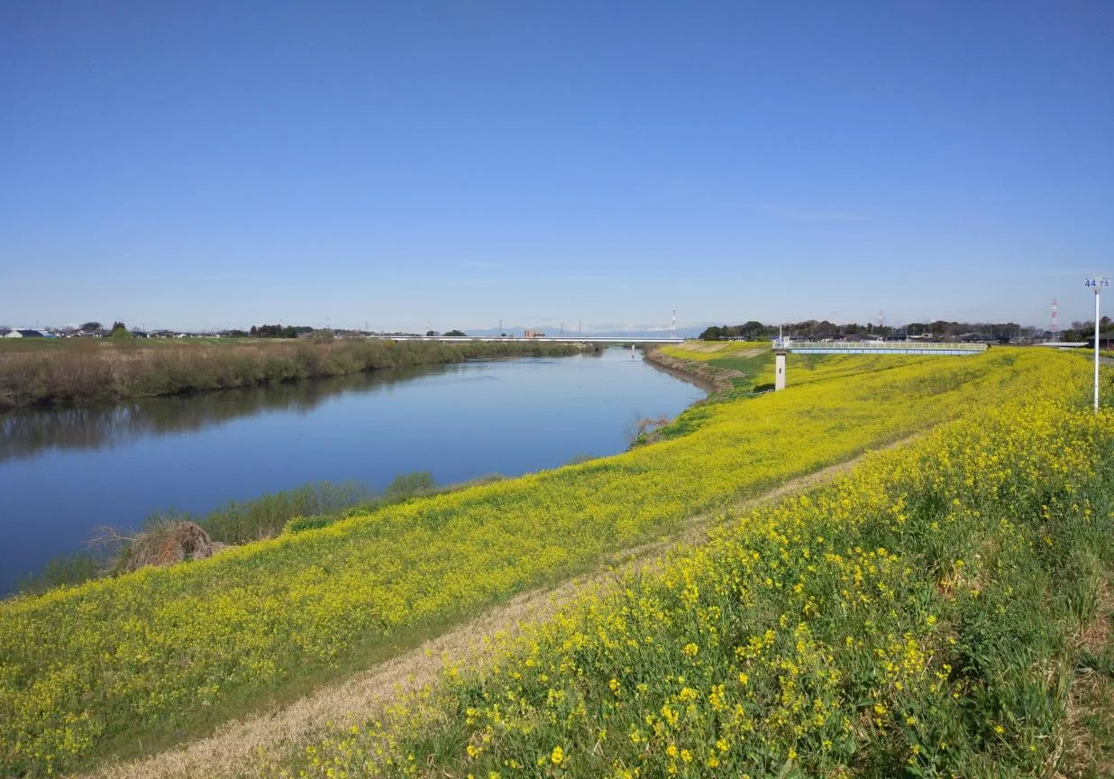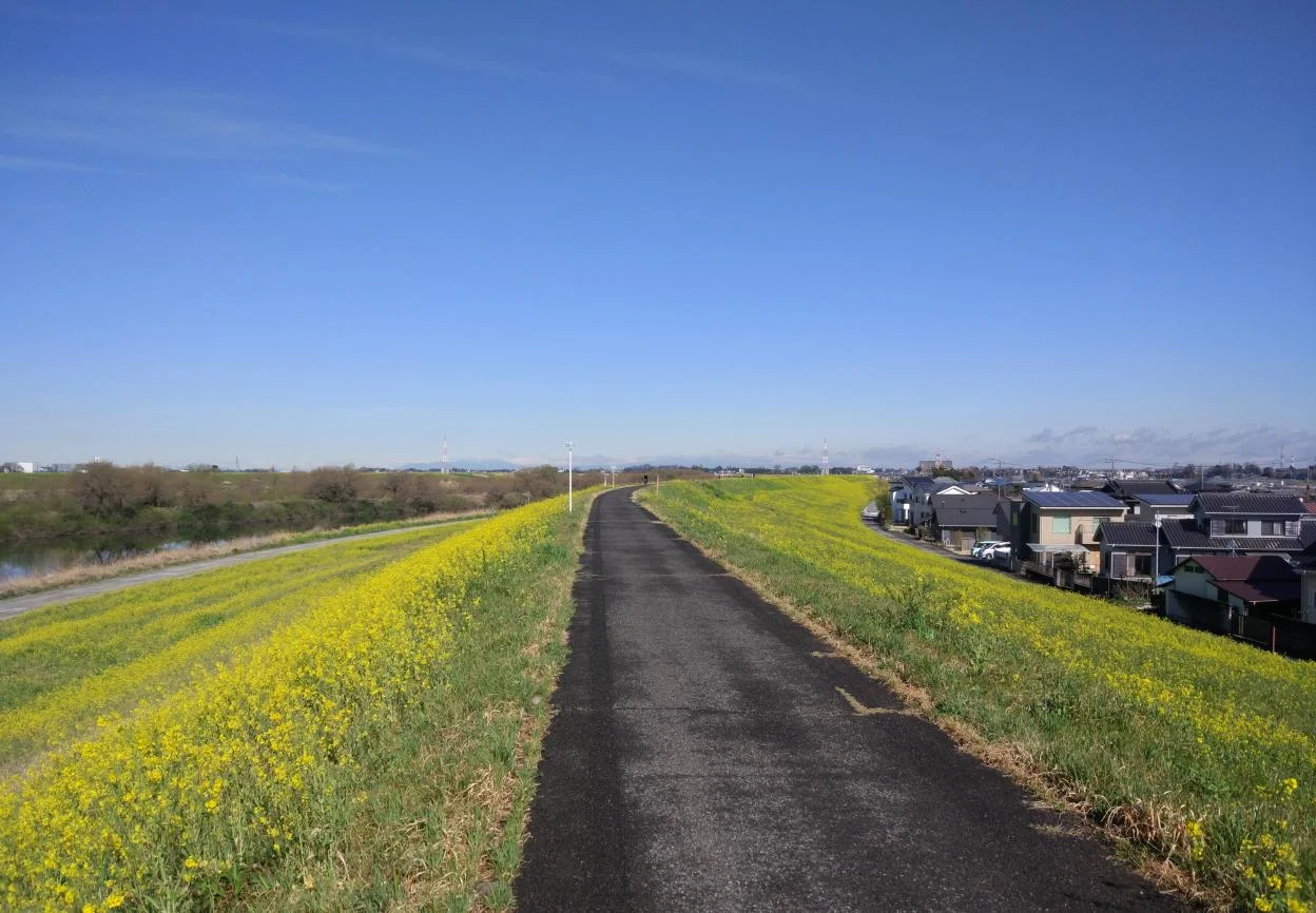 Vent léger et, miraculeusement, pas le moindre moucheron (kobae). Que des fleurs de moutarde chinoise (nanohana) et un ciel bleu, tout bleu, vraiment bleu.