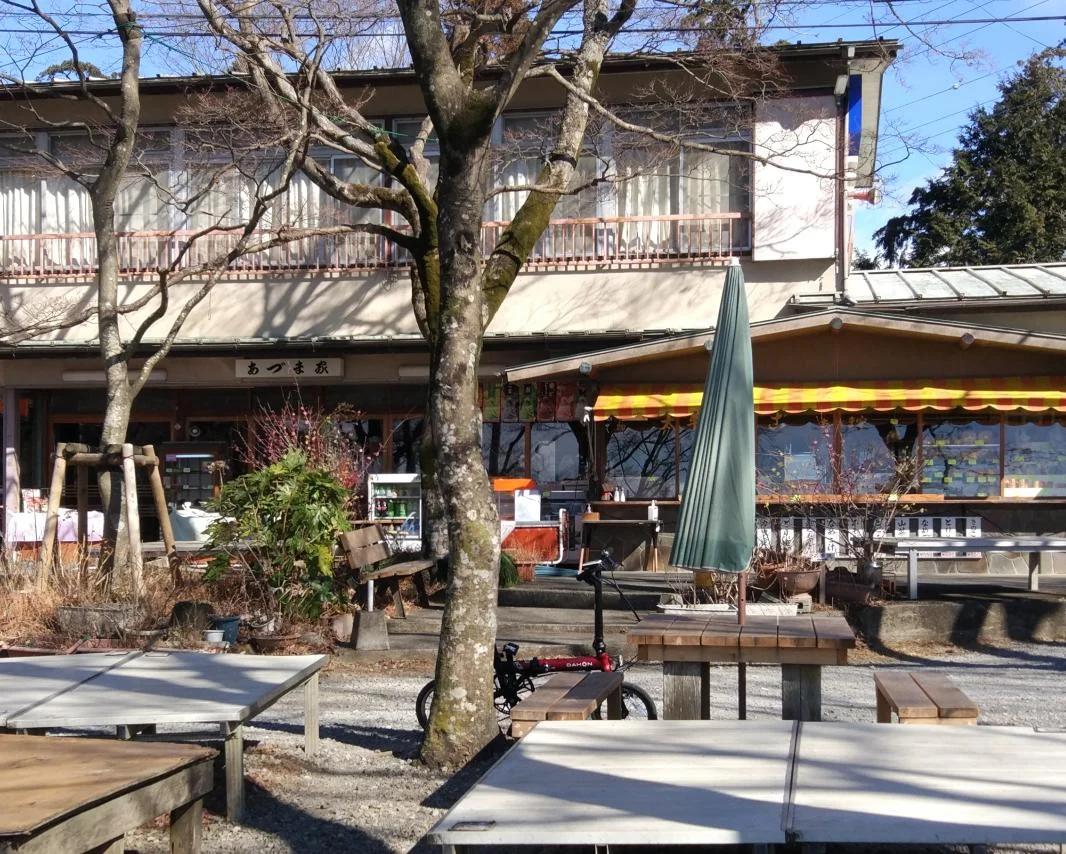 La descente à la gare JR d’Oyama est l’occasion de présenter notre nouveau compagnon de voyage, un petit Dahon K3 à roues de 14 pouces. Avec ses trois vitesses, il peut se lancer à l’assaut des collines, tandis que sur le plat il roule sans trop forcer à 25 km, avec des pointes de 30 km/h quand le cavalier dispose de l’énergie nécessaire dans les jambes… et d’un petit vent dans le dos pour l’aider.