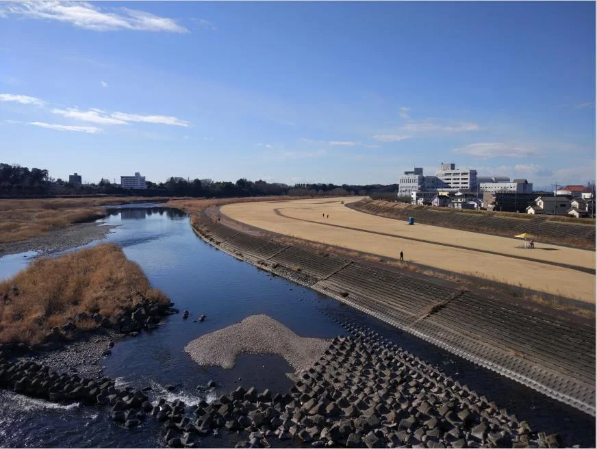 Du côté gauche, où nous allons bifurquer et rouler un moment, la rivière Omoigawa (思川) semble suivre doucement le cours de ses pensées.