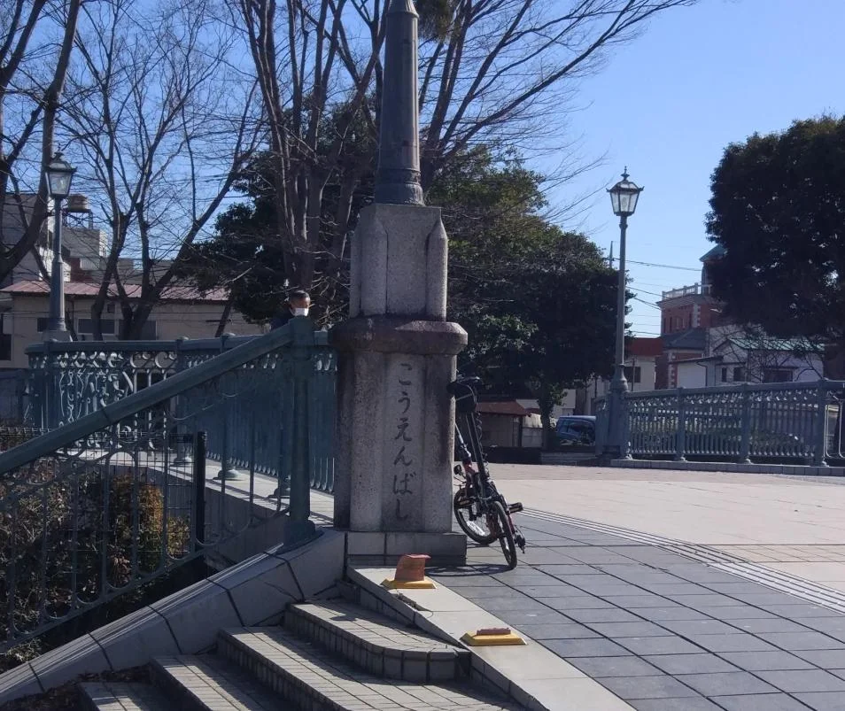 Ce passage étroit nous mène à un parc dont le petit pont, avec une étonnante originalité, se nomme le « Pont du parc » (こうえんばし).