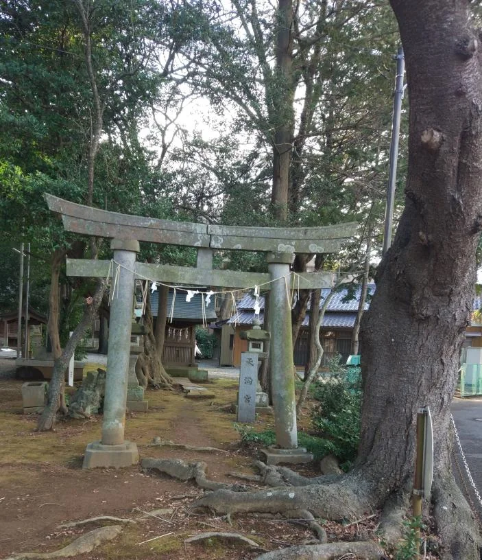 Deux photos supplémentaires de cette petite sortie aérobie. Sur la première, Béni reprend son souffle devant un sanctuaire. Sur la deuxième, un vieux torii (鳥居) m’a demandé, très discrètement, de le prendre en photo sans béni.