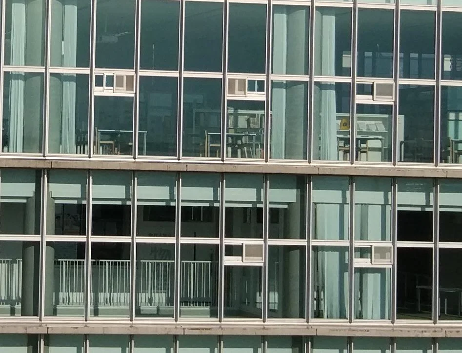 Nous sommes donc passés devant (ou derrière, c’est selon), et, ma foi, ne sommes pas arrivés à nous entendre sur sa valeur esthétique. Était-elle splendide ou affreuse ? Immense, sans le moindre doute, mais avec, dans sa section vitrée et fraîchement peinte en vert, un petit air de prison neuve sur pilotis, si tant est qu’une prison puisse avoir si peu de barreaux et de si grandes fenêtres.