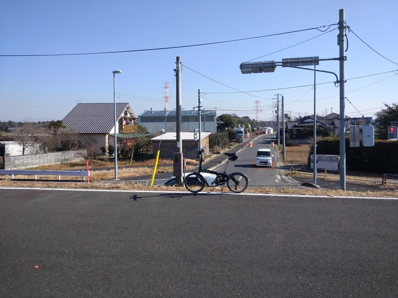 J’ai alors pris une première photo (celle ci-dessus), puis une autre (oui, ci-dessous), sous un autre angle, pour montrer à mon lecteur de Dijon et à mon adorable élève qu’il y avait en fait une route perpendiculaire qui venait se terminer juste à cet endroit. Et cette fin de route (突き当り) avait elle aussi, eh oui, son feu de circulation.